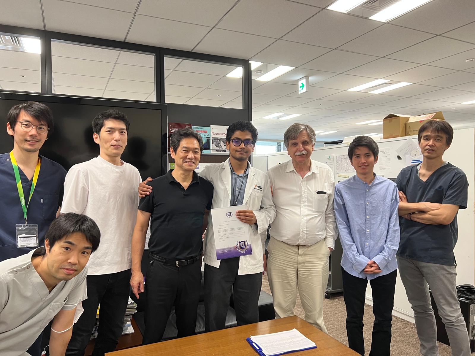 I began the final year of medical school in Tokyo, Japan, after being invited by a Japanese university to learn endovascular techniques with some of the best in the field, and dive deep into medicine from a non-Western perspective. From the first day, I was made to feel like a valued member of the team, by patients, supervisors, and the local Japanese medical students. We keep in touch online, teaching each other Japanese and English. During my time with them, I was exposed to neurological diseases and practiced procedures that until then, I’d only seen in textbooks or videos. Moyamoya disease, for example, is rare in America, but I was able to witness 3 cases in Tokyo. For another one of our patients who had a distal ICA aneurysm (swelling of the main artery supplying the brain) requiring an endovascular coil with a stent (to bypass the abnormality in the vessel), I was able to witness a rare intraoperative bleed and assist with the procedure. Spending time with them up close and personal, I was able to see how ancient traditions blend seamlessly with modern technology.